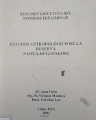 Resumen ejecutivo del informe preliminar : Estudio antropológico de la reserva Nahua-Kugapakori / Juan Ossio, Virginia Montoya y Carolina Loo