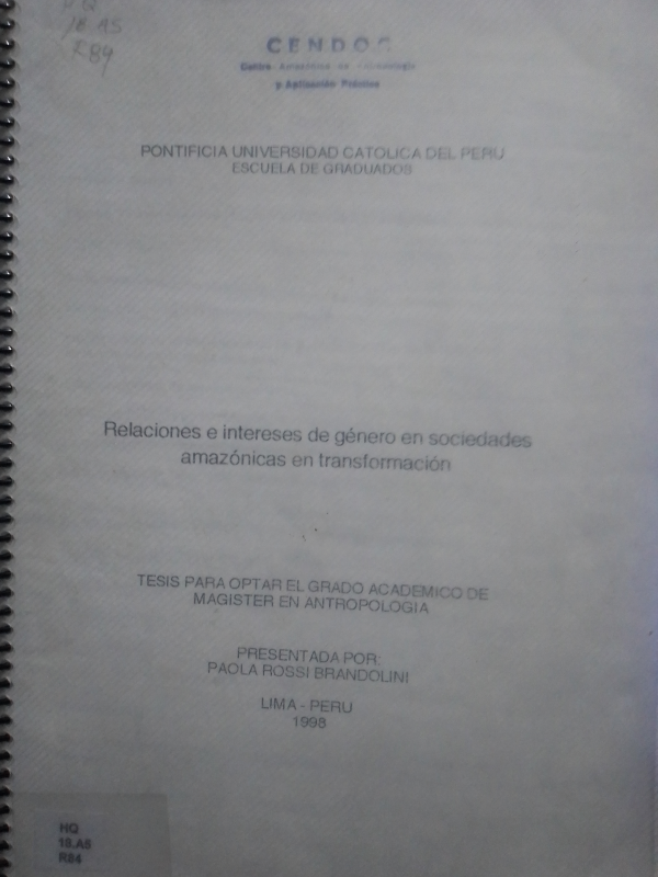 Relaciones e intereses de género en sociedades amazónicas en transformación /